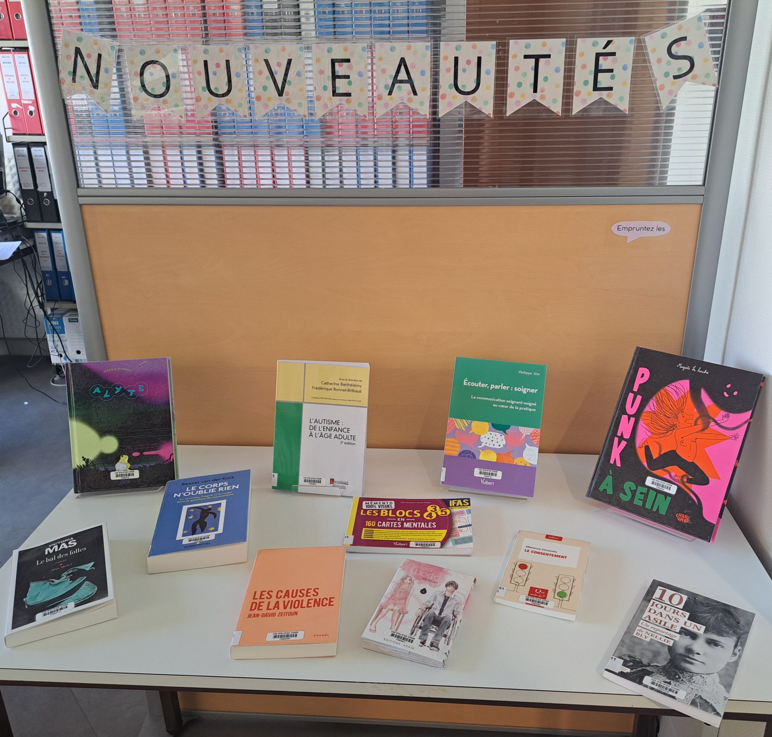 L’espace nouveautés est mis à jour chaque semestre et présente les dernières acquisitions du centre documentaire.